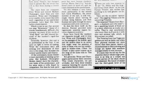 It received uniformly enthusiastic reviews in LA, singled out as a critic’s choice by the LA Times, LA Weekly and Daily News. There was no plot, but the LA Times described the songs as treating “the emotional minefields of youth and adulthood….done with a calculated ambiguity in lyrics that allows audience members to fill in the blanks with specifics of their triumphs and heartbreaks.”