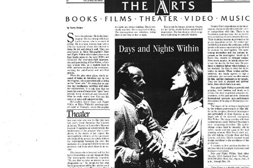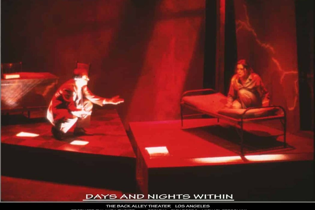 By this time the Back Alley Theatre was in its seventh year of operation and we were reading more than 300 play submissions a year. But as it was still a challenge to find the hidden gems that the bigger theatres didn’t have first dibs on, I was also flying to Louisville for the Humana Play Festival and to Denver for the Prima Facie play reading series. Ellen McLaughlin, who is probably best known for originating the role of the Angel in ANGELS IN AMERICA, had a play that won the Great American Play Contest at the Actors Theatre of Louisville in 1985, DAYS AND NIGHTS WITHIN, and I was in the house, scouting. I couldn’t believe it, but perhaps because it was dark, dark, dark, inspired by Erica Wallach’s book, “Light at Midnight,” nobody else optioned it. We swooped in and produced the west coast premiere in 1986.