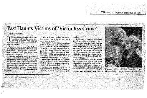 As in NY, the reviews were all over the map, but audiences were so strong, particularly on Thursday evenings when we had post-show discussions with people who had left the life of prostitution, that the run was extended. And did I mention that in the first act, set in the summer, the women wore bathing suits, while in the second act, set in the winter, they changed to evening gowns? The cast, all of whom looked terrific to begin with, literally shrunk before our eyes during the rehearsal period.